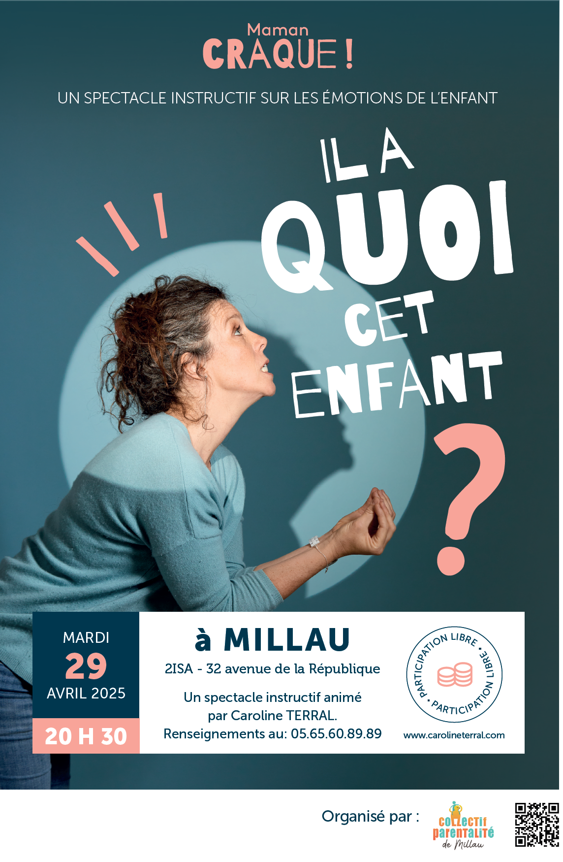 spectacle « Il a quoi cet enfant ? Maman craque ». Apprenez ainsi à mieux comprendre les réa-ctions débordantes de vos enfants pour mieux les accompagner.